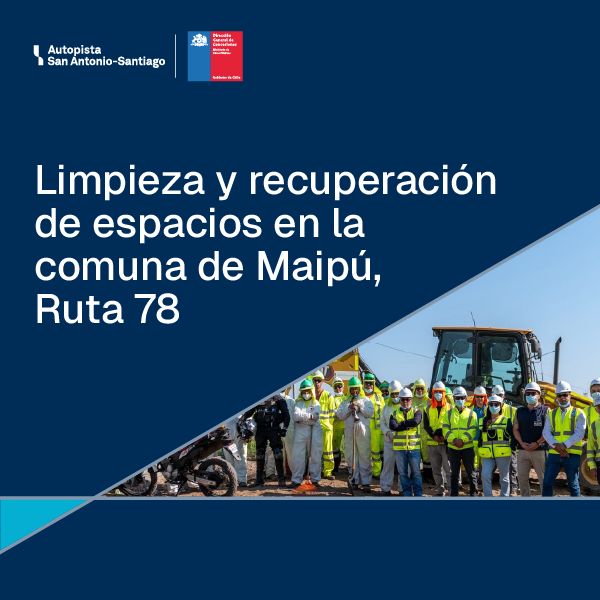 La Sociedad Concesionaria Autopista San Antonio–Santiago, en coordinación con la Municipalidad de Maipú, se encuentra ejecutando operativos integrales de limpieza y recuperación de espacios en la faja fiscal de la Ruta 78, en la comuna de Maipú.