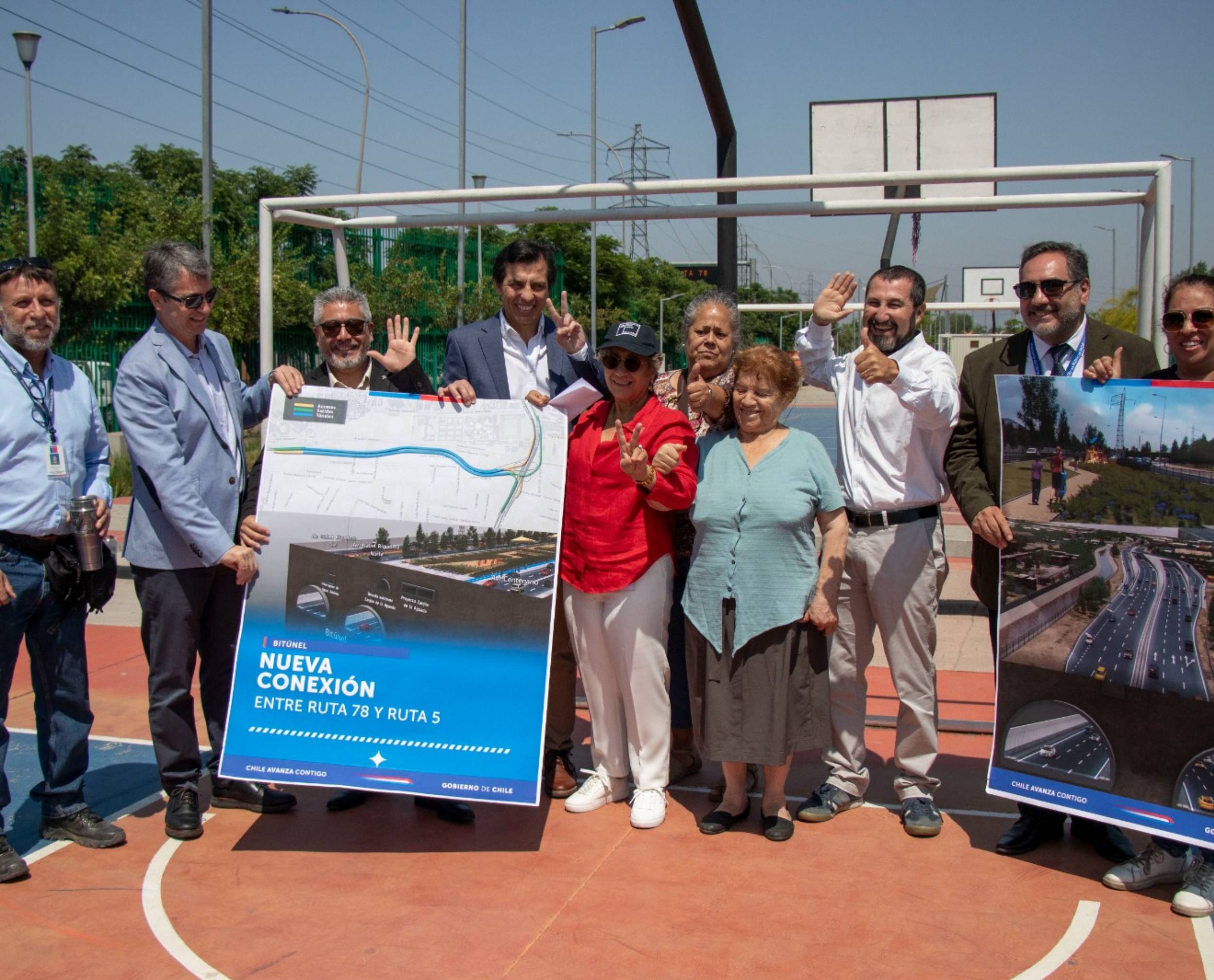La ministra de Obras Públicas, Jessica López, junto al alcalde de Pedro Aguirre Cerda, Luis Astudillo; el director general de Concesiones, Claudio Soto; y el gerente general de la Sociedad Concesionaria Autopista San Antonio – Santiago, Ruta 78, Luis Felipe García, se reunieron con vecinas, vecinos y dirigentes sociales para informar que el Ministerio de Obras Públicas ha iniciado la tramitación correspondiente para modificar el contrato vigente, con el fin de viabilizar una nueva infraestructura para el enlace entre la Ruta 78 y la Ruta 5.