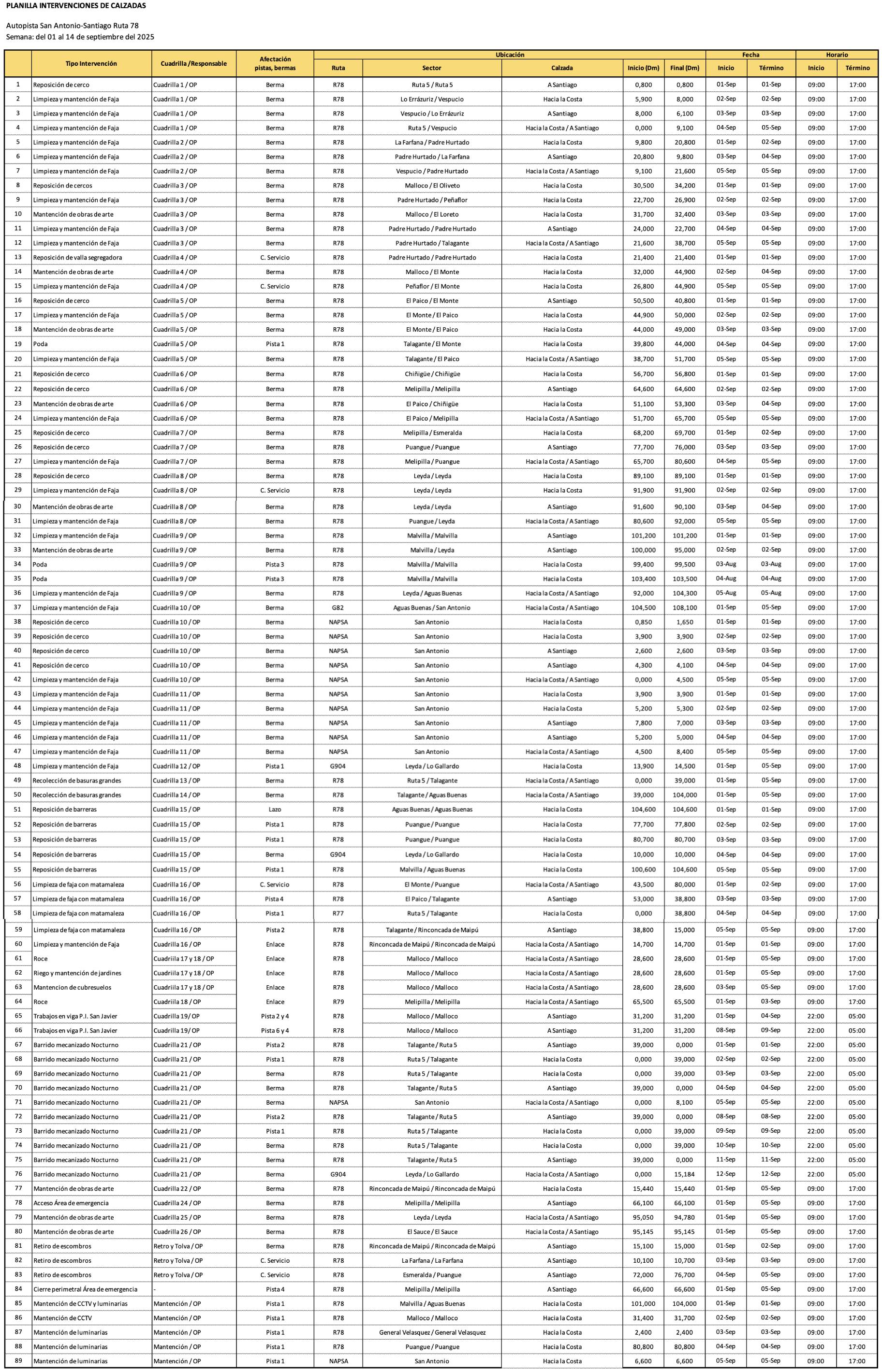 Programa semanal, semana del 1 de Septiembre 2025.