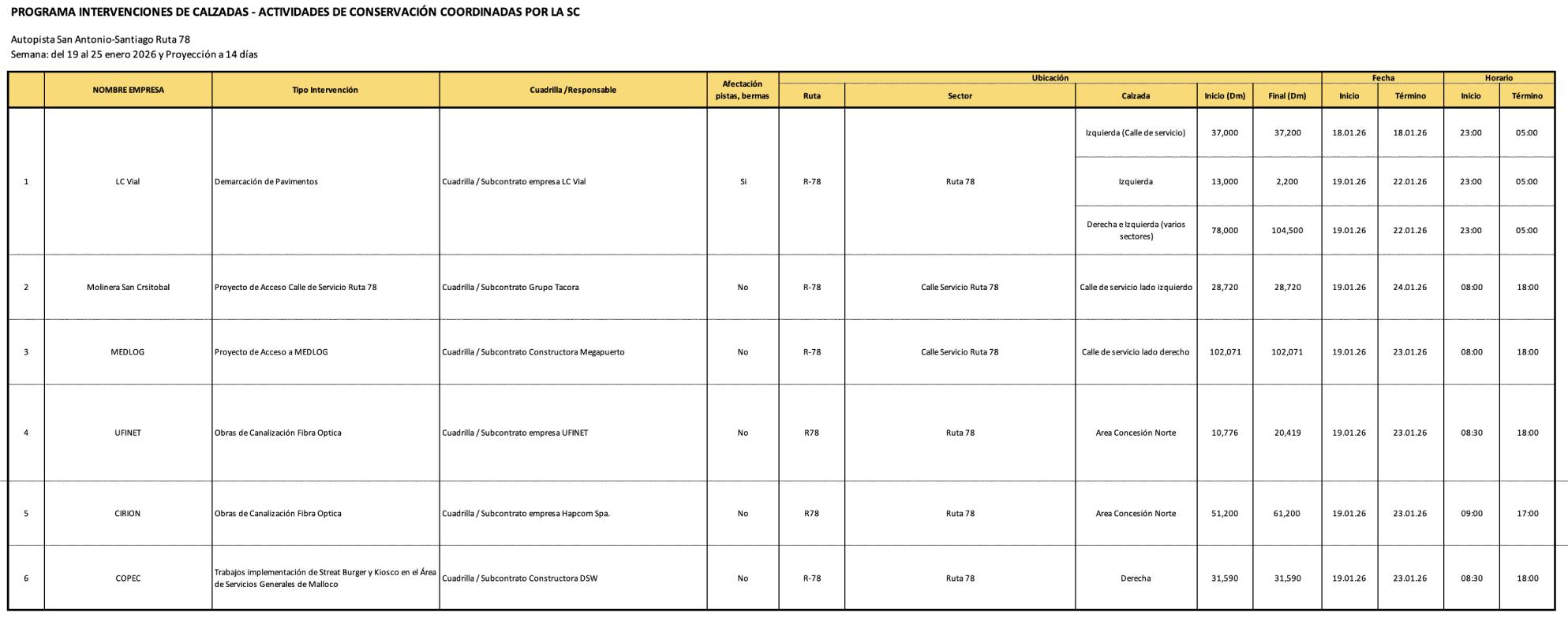 Trabajos en Ruta, semana del 19 de Enero 2026.