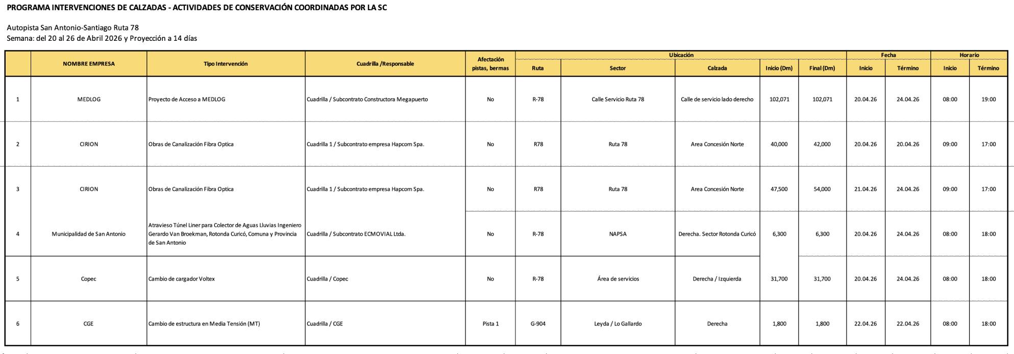 Trabajos en Ruta, semana del 20 de Abril 2026.