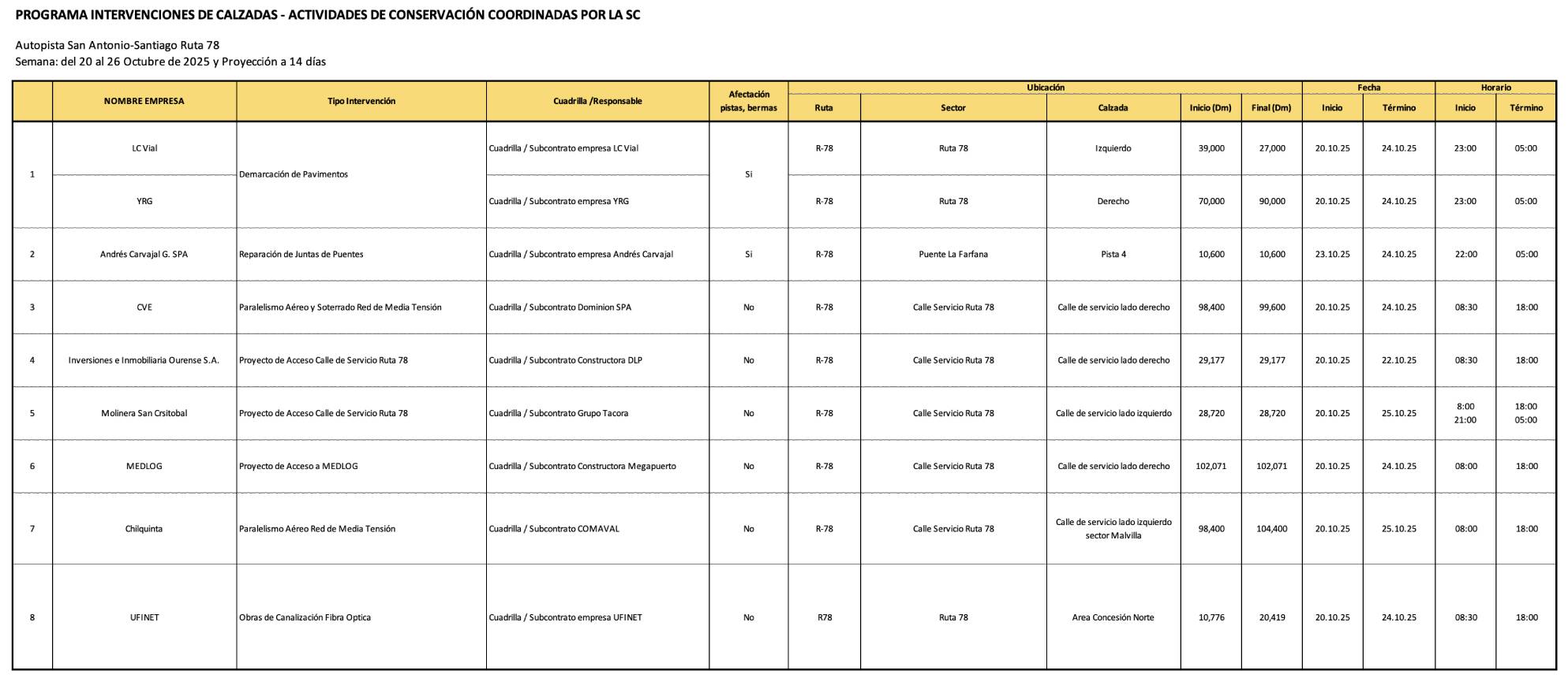 Trabajos en Ruta, semana del 20 de Octubre 2025.
