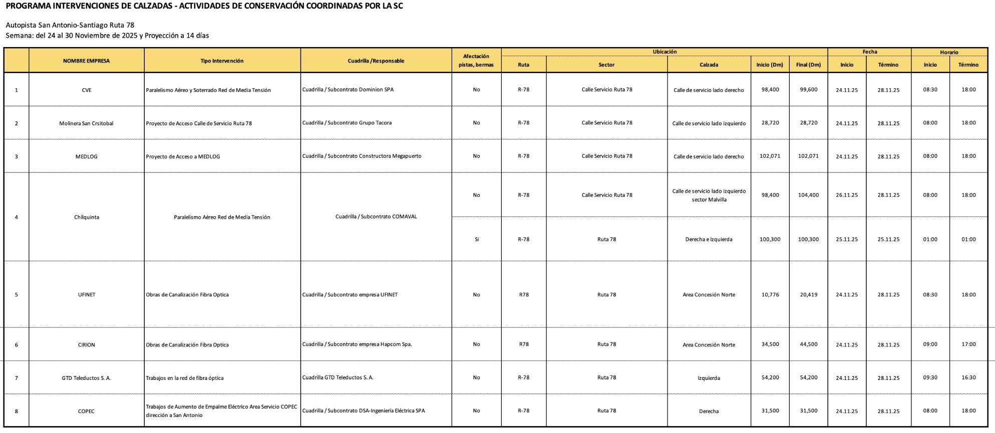 Trabajos en Ruta, semana del 24 de Noviembre 2025.
