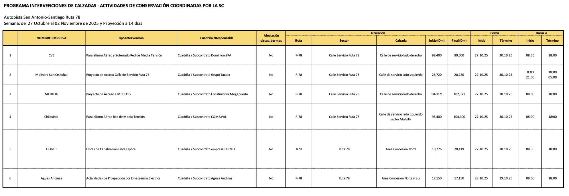 Trabajos en Ruta, semana del 27 de Octubre 2025.