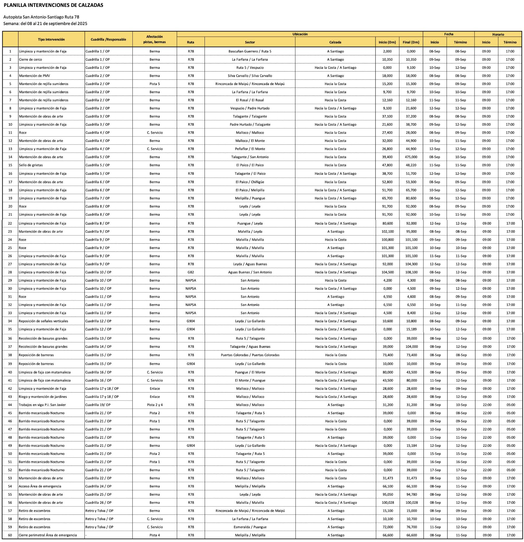 Programa semanal, semana del 8 de Septiembre 2025.