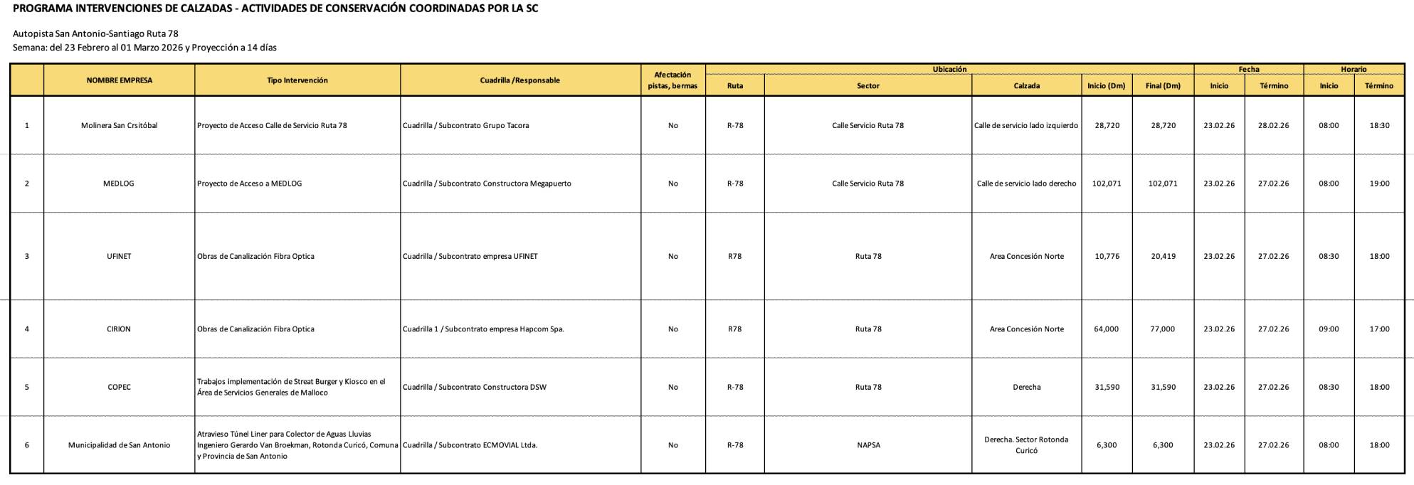 Trabajos en Ruta, semana del 23 de Febrero 2026.
