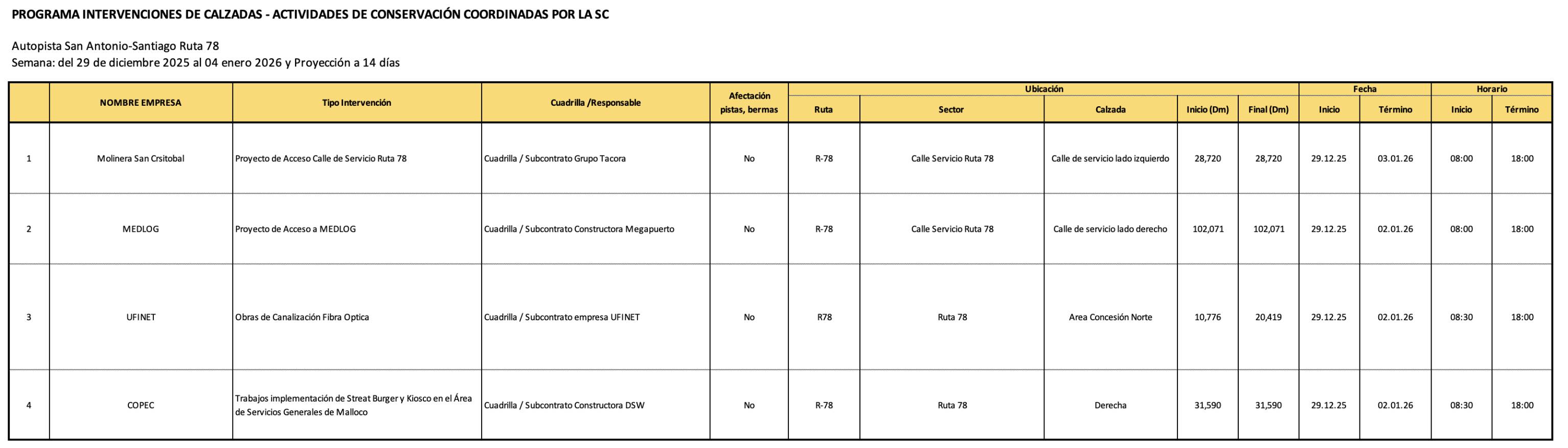 Trabajos en Ruta, semana del 29 de Diciembre.